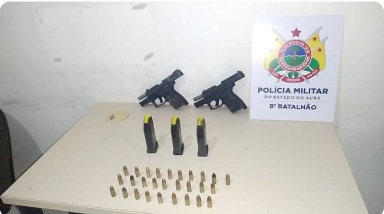O primeiro fato ocorreu no Porto da Catraia em Sena Madureira, onde a equipe policial do 8º Batalhão prendeu um dupla e com ela foi encontrada duas pistolas 9 milímetros, com três carregadores e 28 munições do mesmo calibre. Os dois estariam se preparando para atacar integrantes de organização criminosa rival.