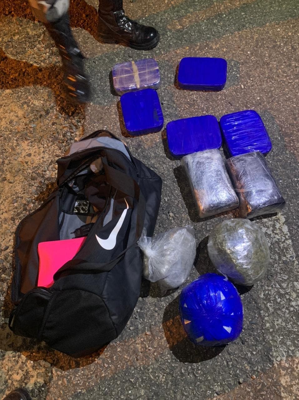 As equipes realizavam barreiras ao longo da rodovia , quando abordaram duas motocicletas. A passageira de um dos veículos estava com uma mochila, sendo encontrado em seu interior, com a ajuda do Cão Policial, cinco pacotes de cocaína e mais cinco pacotes de maconha.