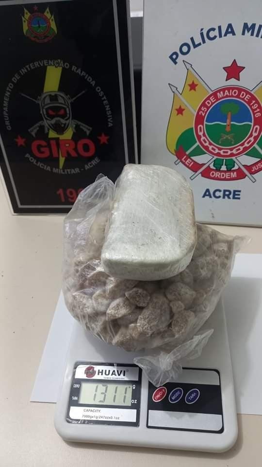 Guarnições da Polícia Militar do Acre (PMAC), durante serviço deste domingo, 5, apreendeu mais de um quilo de drogas e uma arma de fogo. As ocorrências se deram em bairros distintos de Rio Branco, onde duas pessoas foram presas e encaminhadas a Delegacia de Flagrantes (Defla).