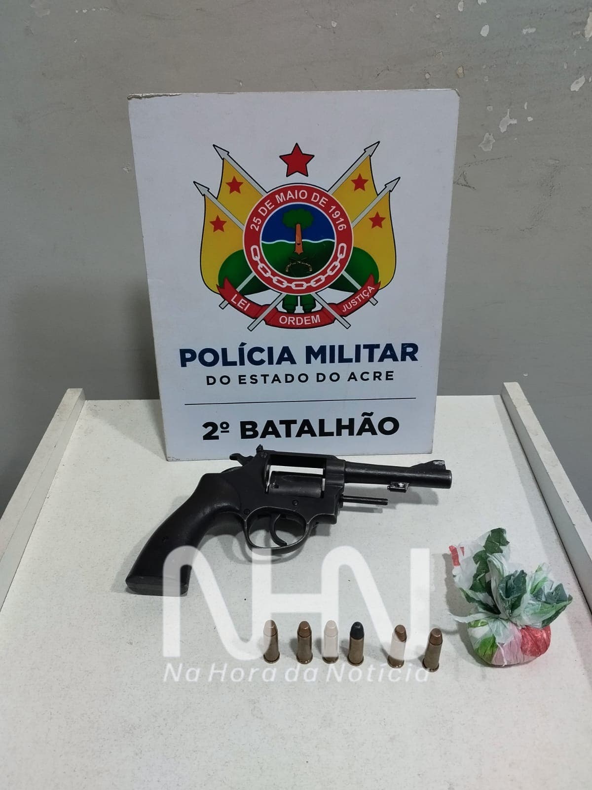 Um homem de 40 anos foi preso em flagrante pela Polícia Militar na noite deste sábado (16), no bairro Quinze, em Rio Branco, por posse ilegal de arma de fogo e suspeita de tráfico de drogas. A ocorrência foi registrada por volta das 20h30, durante patrulhamento ostensivo.