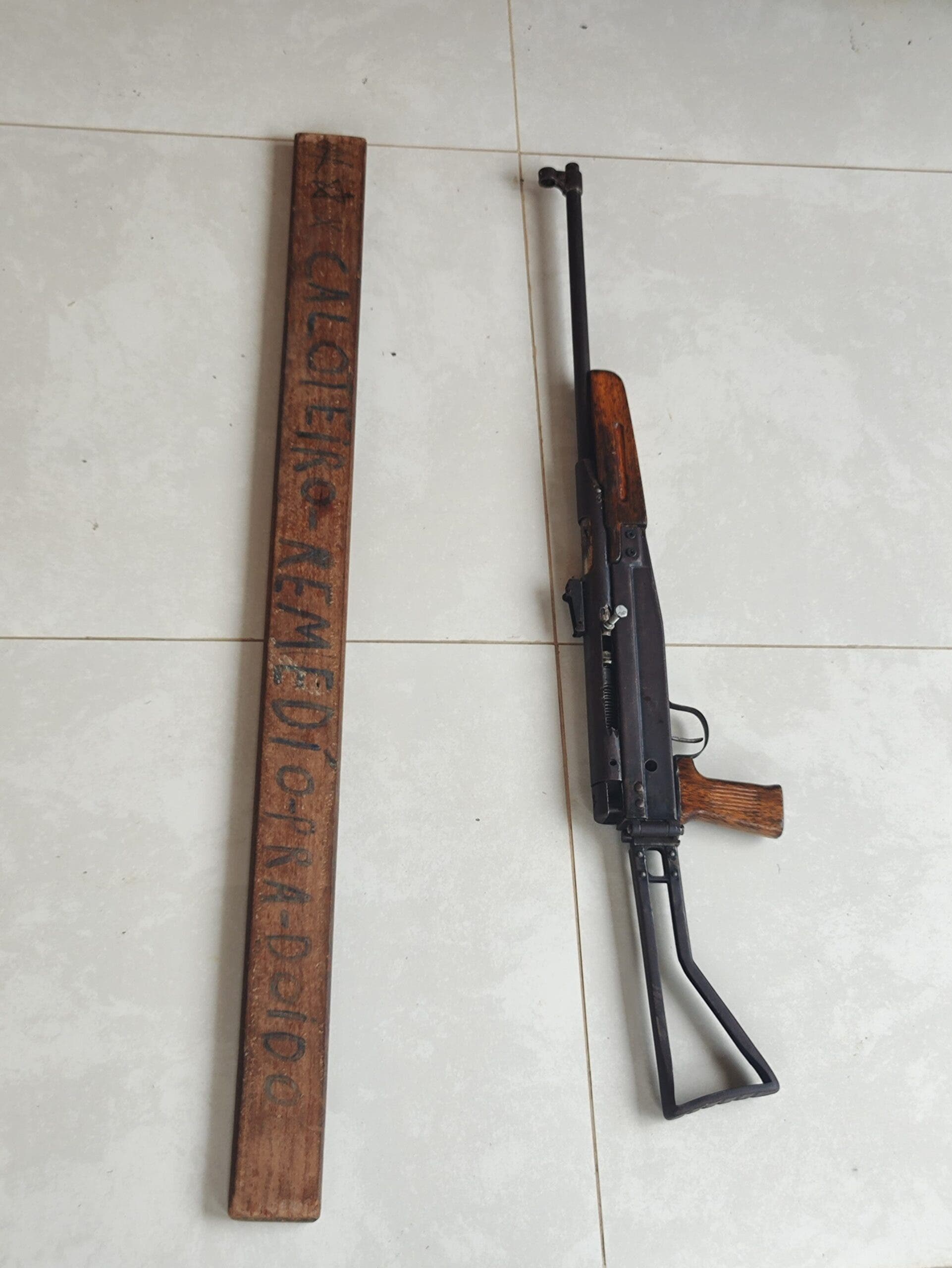 O homem estava com uma arma de fogo adaptada para calibre.22, e 49 munições intactas, além de uma deflagrada. Além da arma ele ainda tinha aproximadamente 67 gramas de uma substância aparentando ser maconha e 27 cigarros, também aparentando ser de maconha, e mais de R$ 4 mil reais, possivelmente em cédulas falsas.