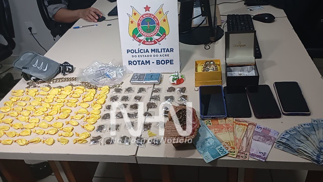 Equipes da Rondas Ostensivas Táticas Motorizadas (Rotam), que atuam na segunda fase da Operação Duas Dobras do Bope, prenderam dois homens por tráfico de drogas na tarde desta segunda-feira (17) no Bairro Seis de Agosto, nas proximidades da Quarta Ponte, em Rio Branco.