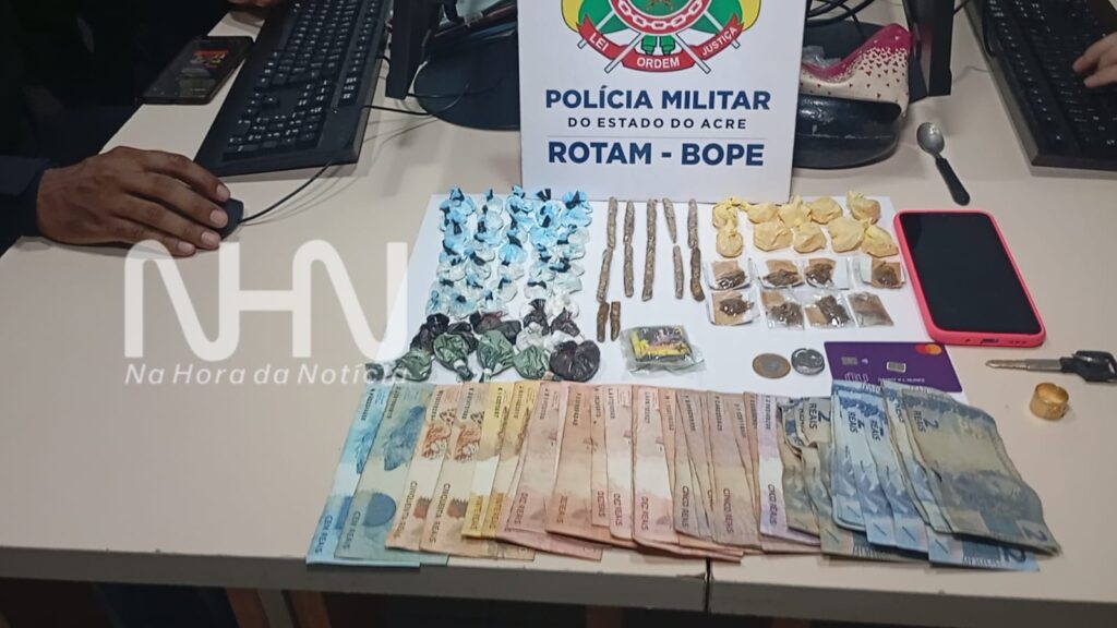 Ismael Rodrigues Santos da Silva, de 22 anos, foi preso na noite desta segunda-feira (28), suspeito de tráfico de drogas na Rua da Tripa, no bairro São Francisco, em Rio Branco. A ação foi realizada pelo Grupamento de Rondas Ostensivas Táticas Motorizadas (Rotam), do Batalhão de Operações Especiais (Bope).