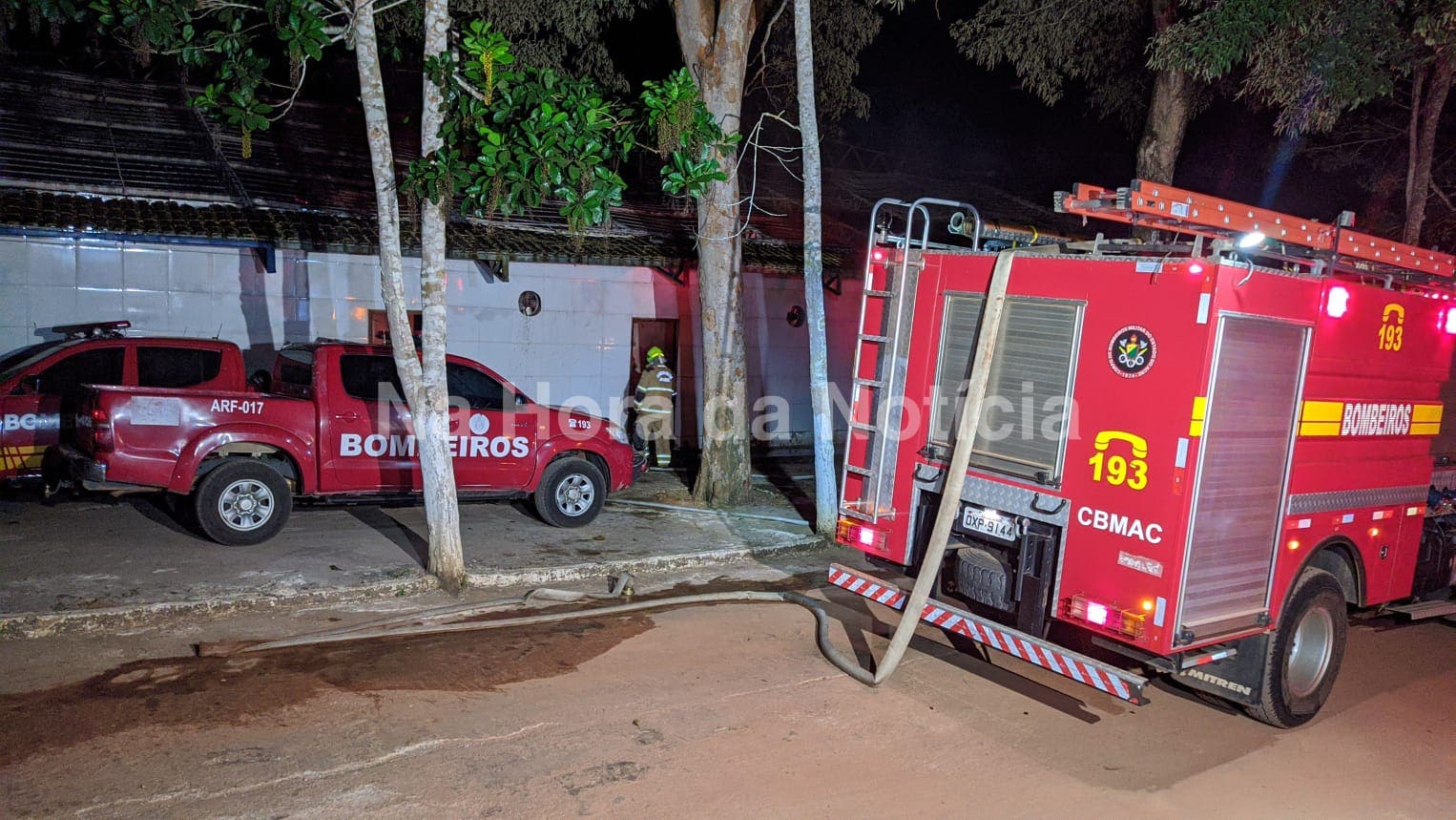 Um incêndio de grandes proporções atingiu a sede da Verágua na Estrada Triunfo, no município de Senador Guiomard, no início da noite desta terça-feira (28).