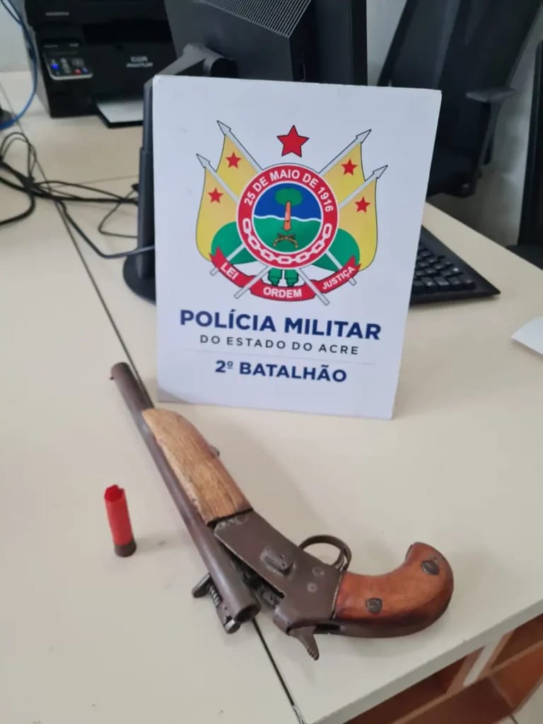 A Polícia Militar efetuou a prisão de um indivíduo que estava envolvido em atividades de extorsão e ameaças aos moradores do Bairro Recanto dos Buritis, utilizando uma arma de fogo artesanal. O incidente ocorreu na tarde do último sábado, 13, na travessa Osvaldo Coelho, localizada na região do 2º distrito de Rio Branco.