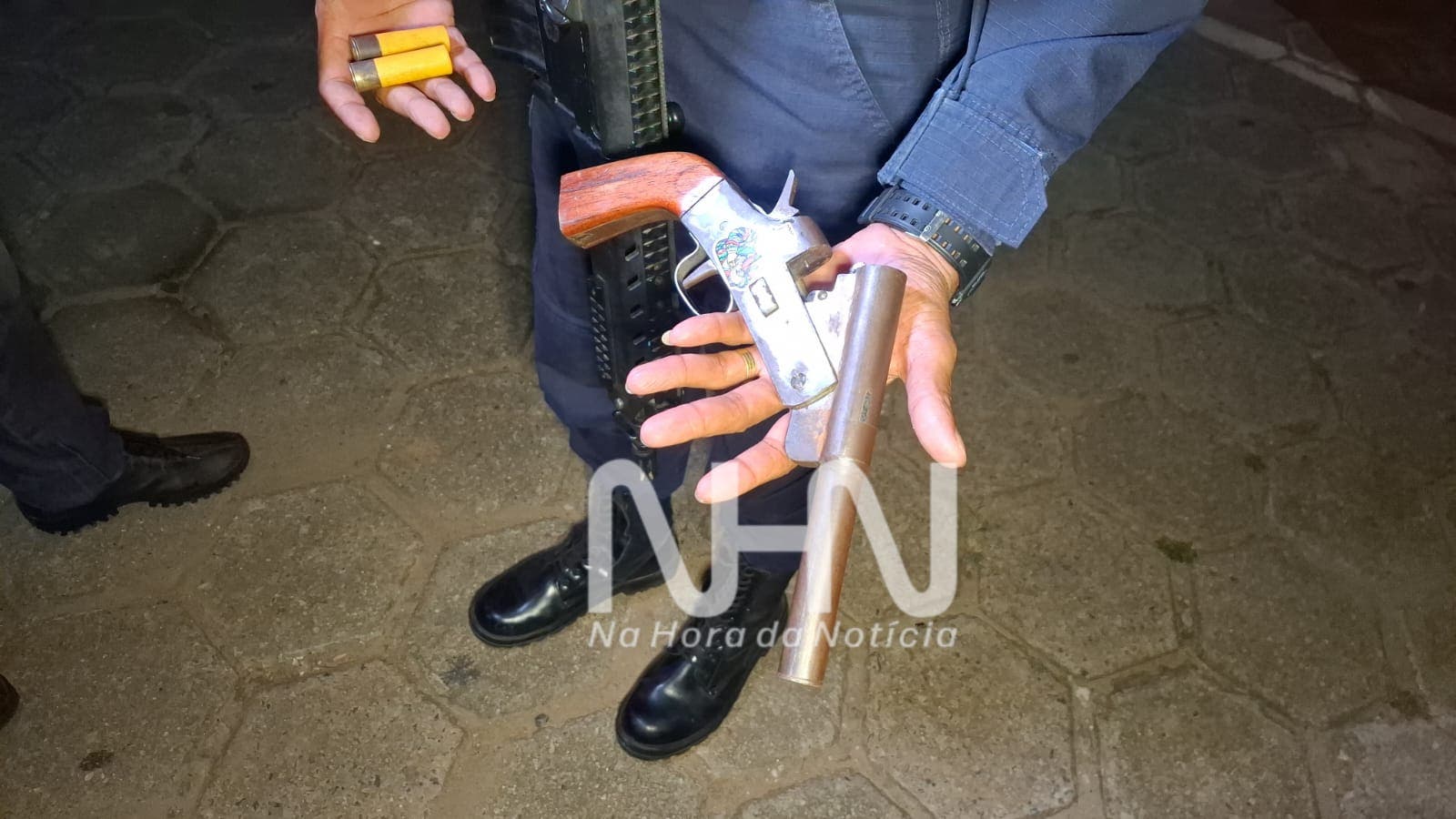 Ao chegar ao local, os militares encontraram vários indivíduos consumindo entorpecentes em frente à residência e também em seu interior. Durante a revista, os policiais localizaram uma escopeta calibre 20 com duas munições intactas sobre uma mesa.