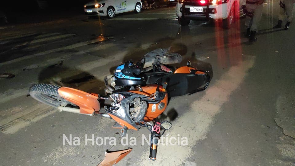 Tentando atravessar avenida, mulher é atropelada por moto e tem perna quebrada