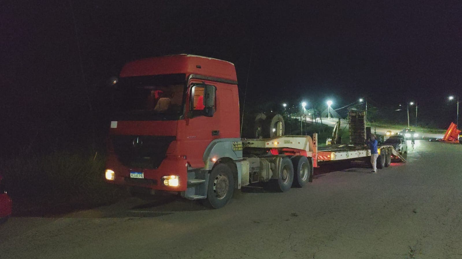 Um trator de esteira caiu de uma carreta prancha e deixou parte da BR-364 interditada na noite desta quarta-feira (12), na Via Verde, nas proximidades da 3ª Ponte, em Rio Branco.