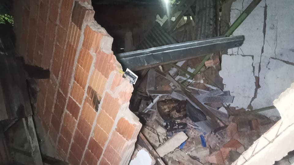 O desabamento ainda atingiu uma casa de madeira do irmão do proprietário e a área da residência do vizinho.