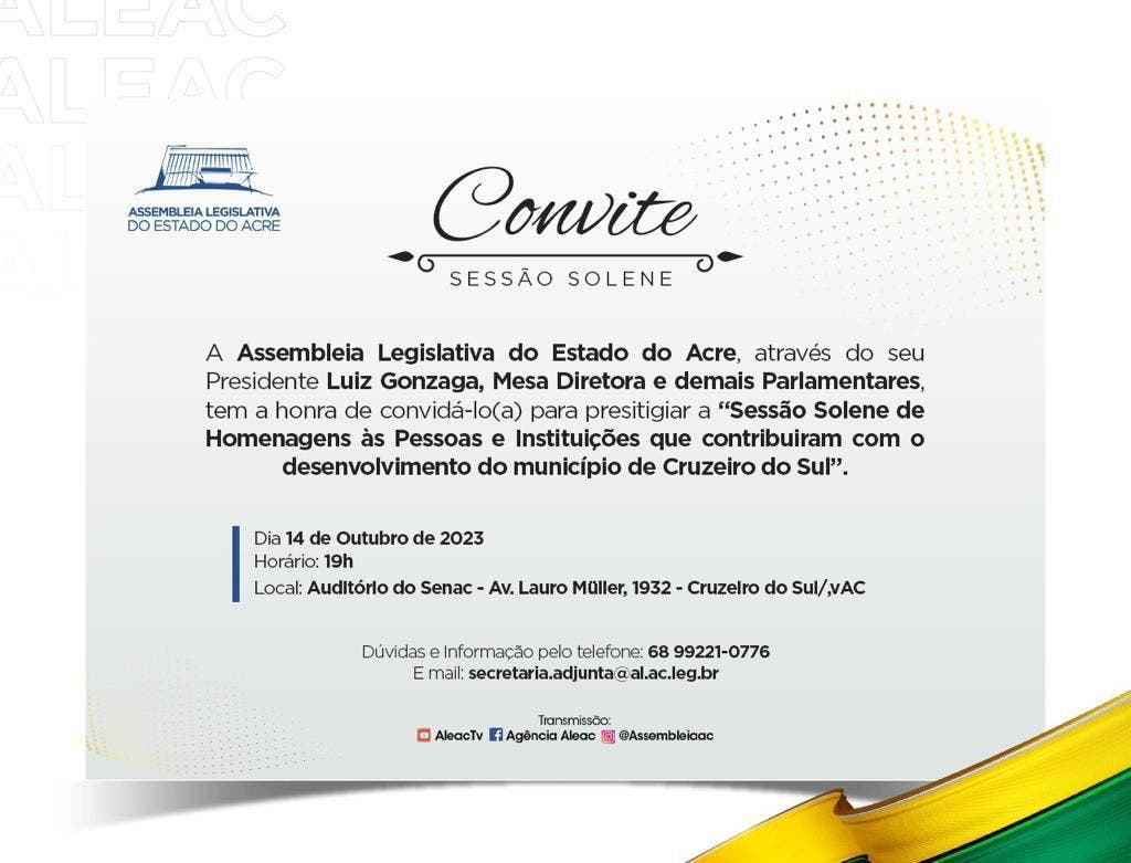 O presidente da Aleac, deputado Luiz Gonzaga, enfatizou a importância desses eventos, destacando: “Através da audiência pública e da sessão solene, buscamos fortalecer o diálogo e reconhecer as valiosas contribuições de indivíduos e instituições para o desenvolvimento de Cruzeiro do Sul e do Juruá como um todo. É fundamental promover transparência e homenagear aqueles que moldam nosso futuro econômico e social. Assim como também se faz necessário avançarmos no que diz respeito à economia na região.”