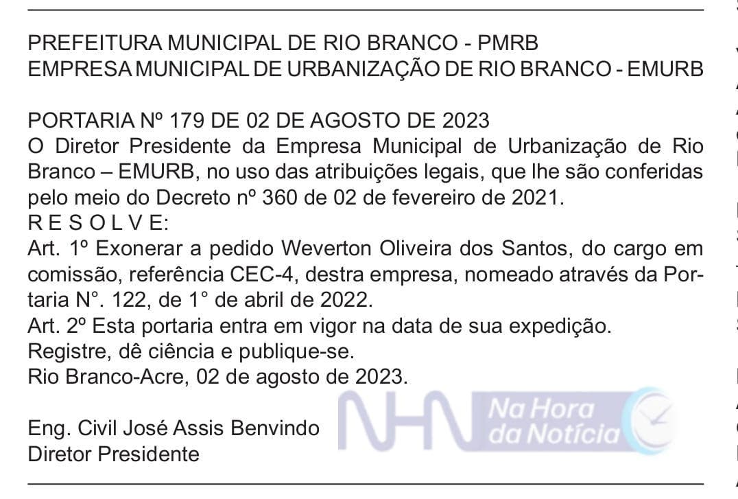 A prefeitura de Rio Branco (AC) publicou na edição do Diário Oficial do Estado do Acre (DOE/AC), desta quinta-feira, 3, a exoneração de Weverton Oliveira dos Santos, conhecido por Silvio Santos.