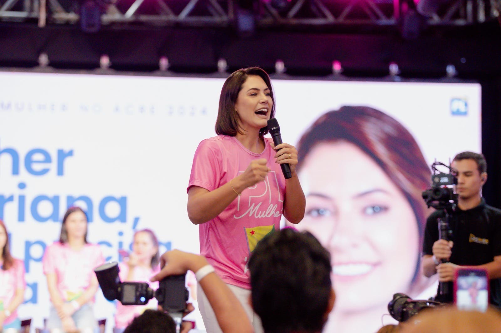 Na manhã do último sábado (23), Rio Branco foi palco do Encontro do PL Mulher 2024, sob o tema “Mulher acreana, o Brasil precisa da sua força”. O evento contou com a participação de Michelle Bolsonaro, presidente nacional do PL Mulher, e Charlene Lima, presidente estadual do PL Mulher.