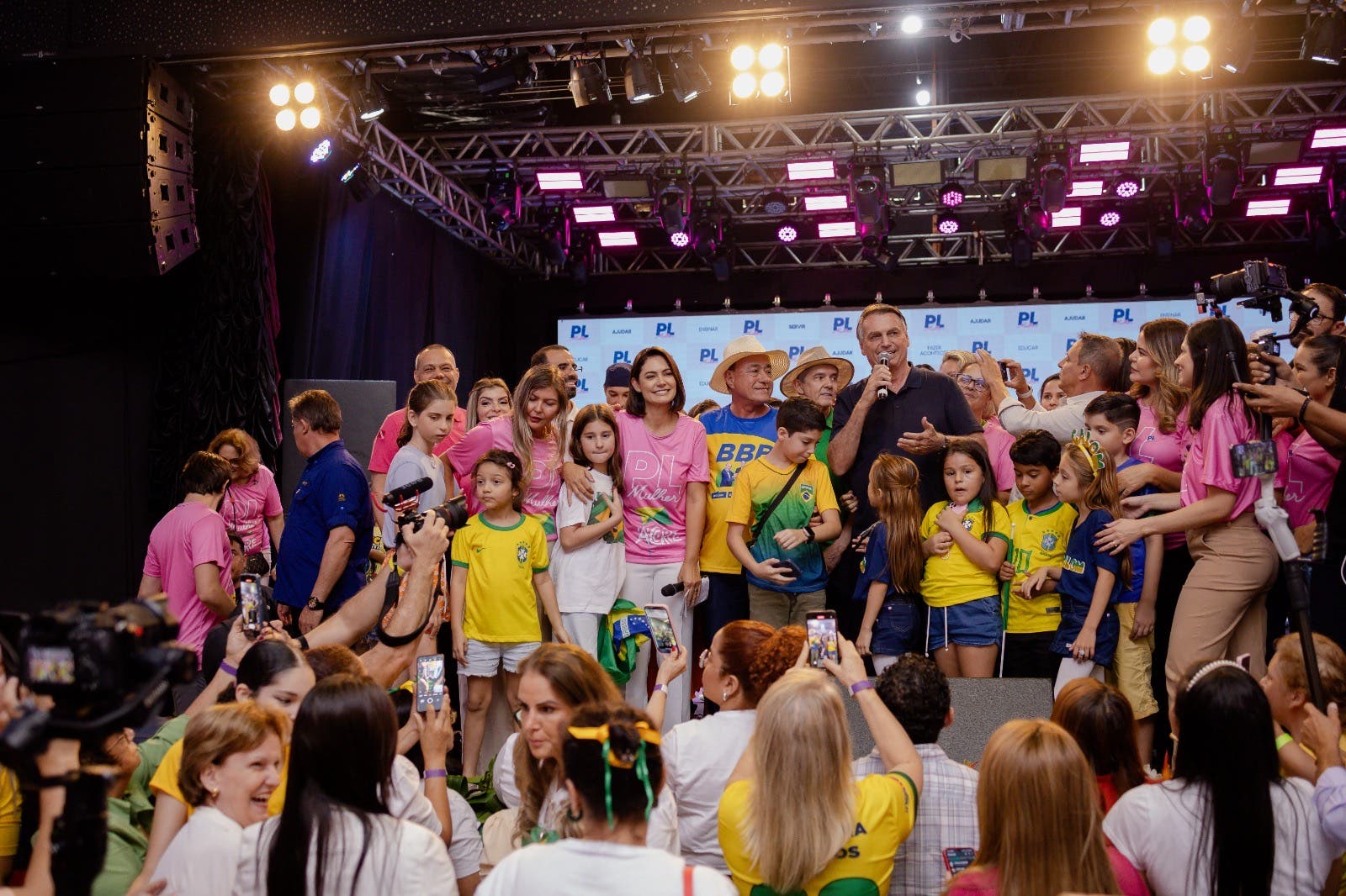 ‘Temos um objetivo que se resume em quatro palavras: Deus, Pátria, Família e Liberdade. Aprendemos novamente a cantar o hino nacional, a vestir o verde e amarelo e a valorizar a nossa família, que é o nosso maior patrimônio. Por isso, a presença de vocês aqui tem um propósito. Entrar para a política não por conta de uma cota, mas por vontade”, disse o ex-presidente.