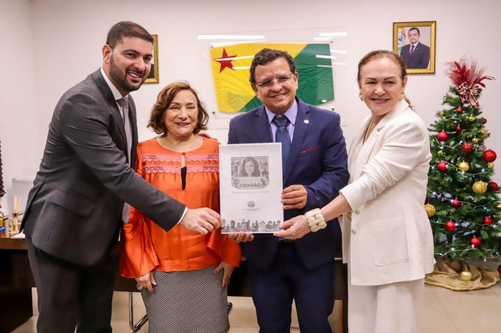 Na manhã desta terça-feira, 28 de novembro, o presidente da Assembleia Legislativa do Acre, Luiz Gonzaga, e o primeiro secretário da mesa diretora, Nicolau Junior, receberam das desembargadoras Regina Ferrari, presidente do Tribunal de Justiça do Acre, e Eva Evangelista, coordenadora Estadual da Mulher em Situação de Violência Doméstica e Familiar, minuta de projeto de lei de grande importância. A proposta visa estabelecer princípios e diretrizes para a criação de programas reflexivos e responsabilizantes voltados aos autores de violência doméstica e familiar contra a mulher no Estado do Acre.
