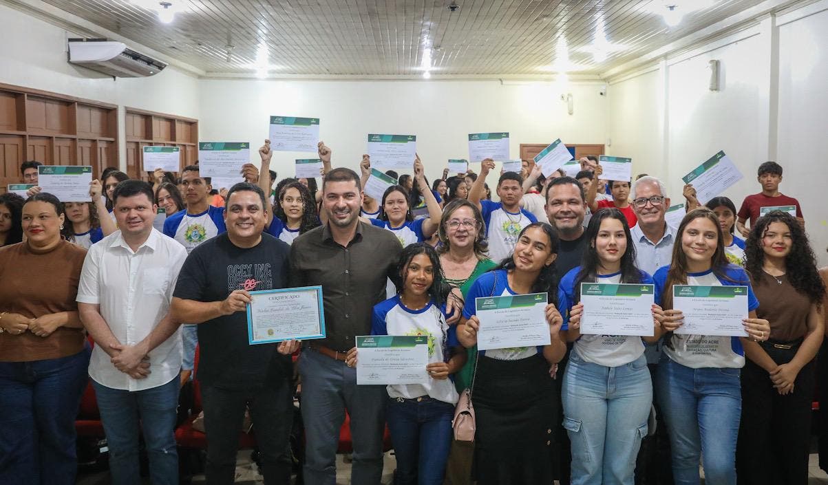 A entrega dos certificados aconteceu na tarde desta sexta feira, 4, na escola Kairala José Kairala, em Brasiléia, com a presença dos estudantes, professores, coordenadores pedagógicos, do vice prefeito Amaral do Gelo e os deputados Gilberto Lira e Tadeu Hassem.