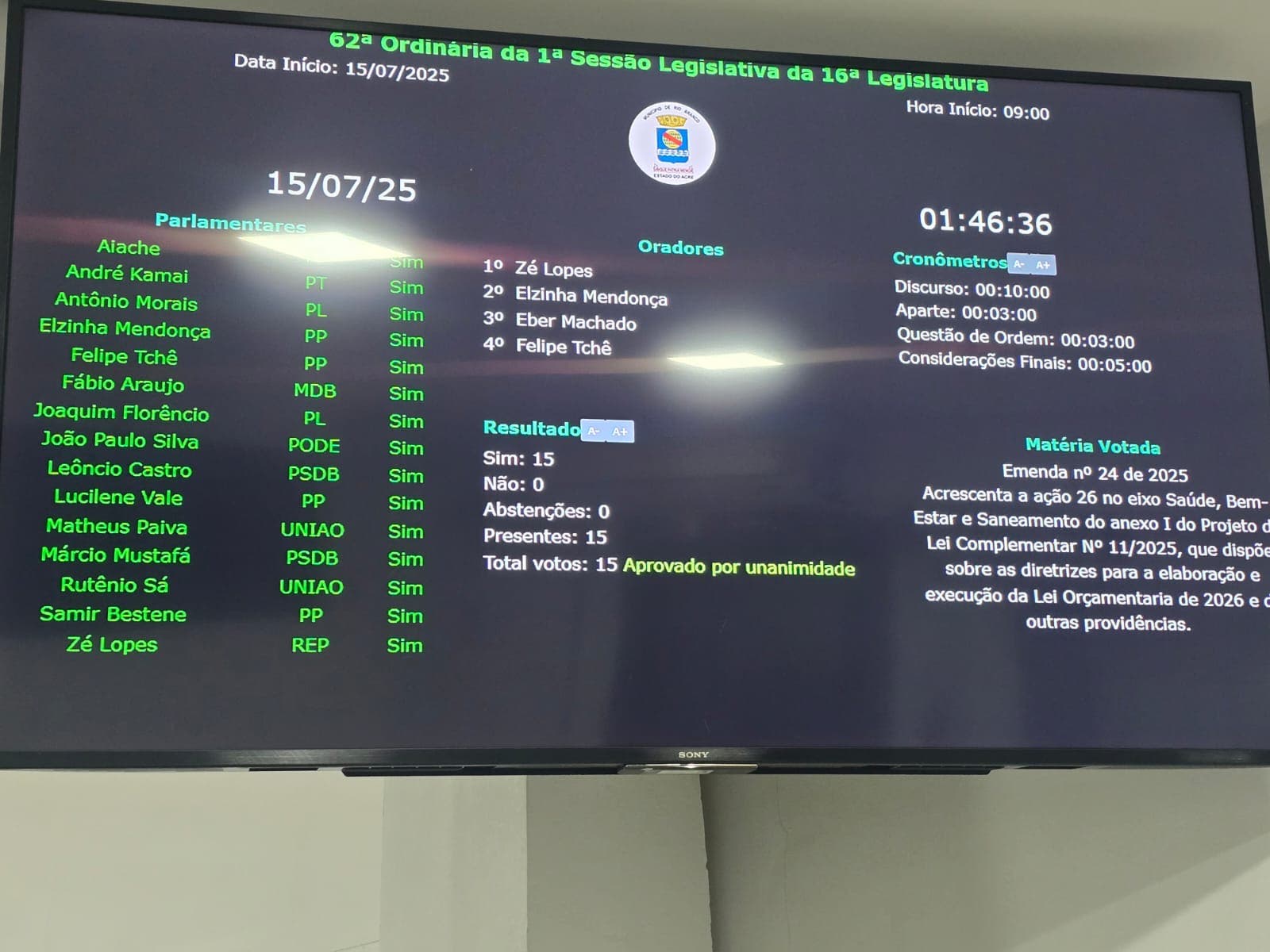 Após devidamente aprovada pelos parlamentares, e reafirmando seu compromisso com a valorização do funcionalismo público, a emenda aditiva ao Projeto de Lei Complementar nº 11/2025 — que trata das diretrizes para a Lei Orçamentária de 2026 — garante auxílio-saúde e alimentação a todos os servidores da área da saúde do município de Rio Branco e foi integrada à LDO para 2026.