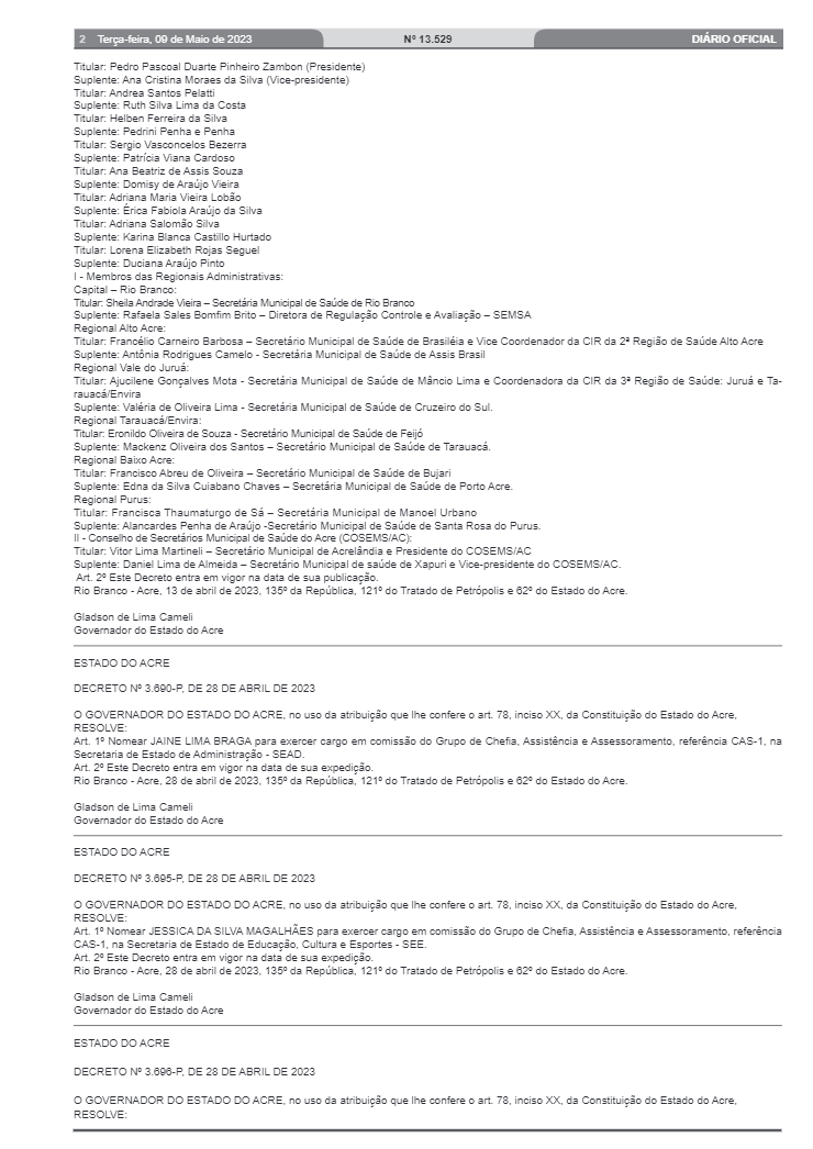 Uma das nomeações é de delegado de polícia e ex-deputado estadual e ex-secretário de Segurança Pública do Acre, Walter Prado.