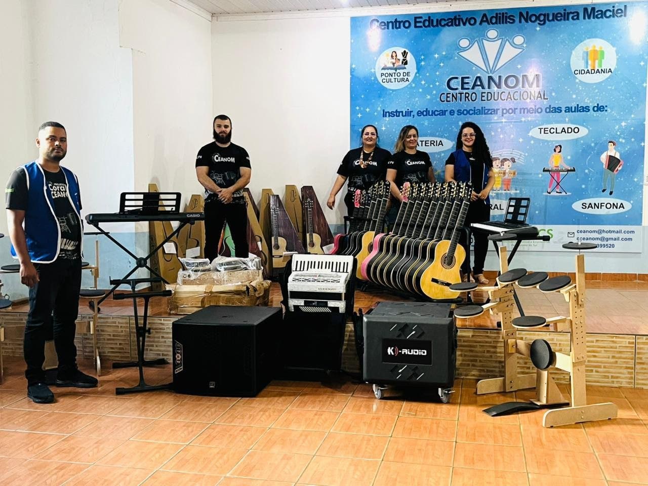 Graças ao apoio do deputado Gonzaga, o centro conseguiu comprar instrumentos musicais que vão beneficiar centenas de crianças e jovens nos projetos sociais desenpenhados pelo CEANOM na região do Juruá.