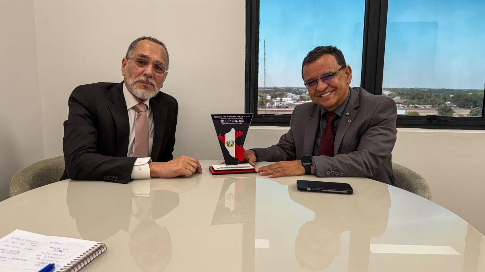 O primeiro-secretário da Mesa Diretora da Assembleia Legislativa do Acre (Aleac), deputado Luiz Gonzaga (PSDB), recebeu em seu gabinete nesta terça-feira (19) a visita do cônsul-geral do Peru no Acre, Pedro Alberto Rubin Heraud, para tratar do fortalecimento dl comércio bilateral.