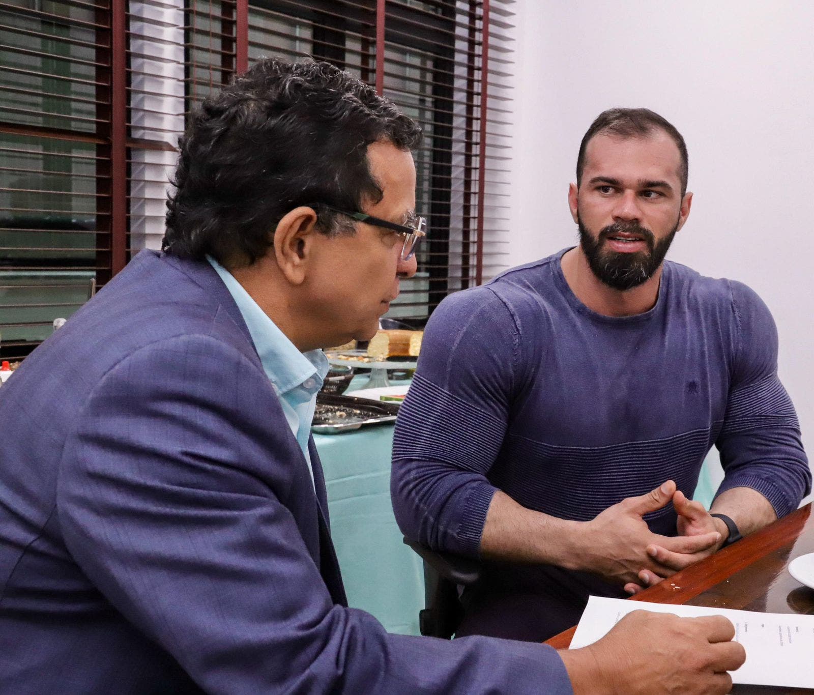 Gonzaga recebe fisiculturista para tratar de projeto que incentiva esportes e atividades físicas nas escolas