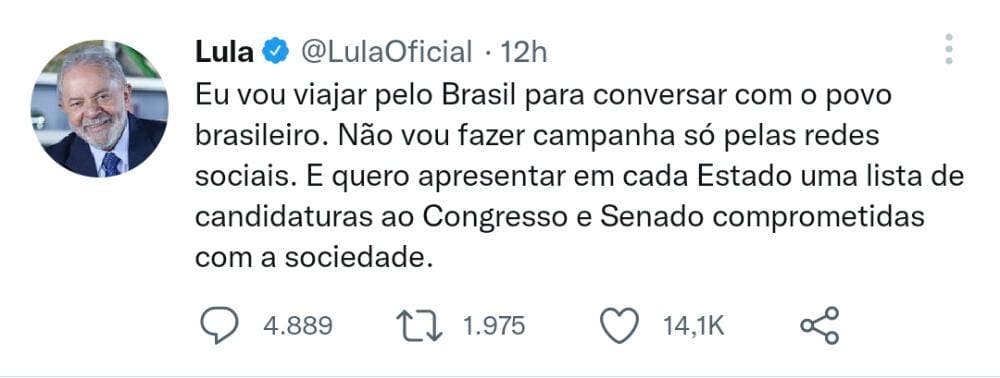 Por Redação Na Hora da NotíciaELEIÇÕES 2022: Lula garante que viajará todo o Brasil para conversar com o povo e que não fará campanha somente nas redes sociais