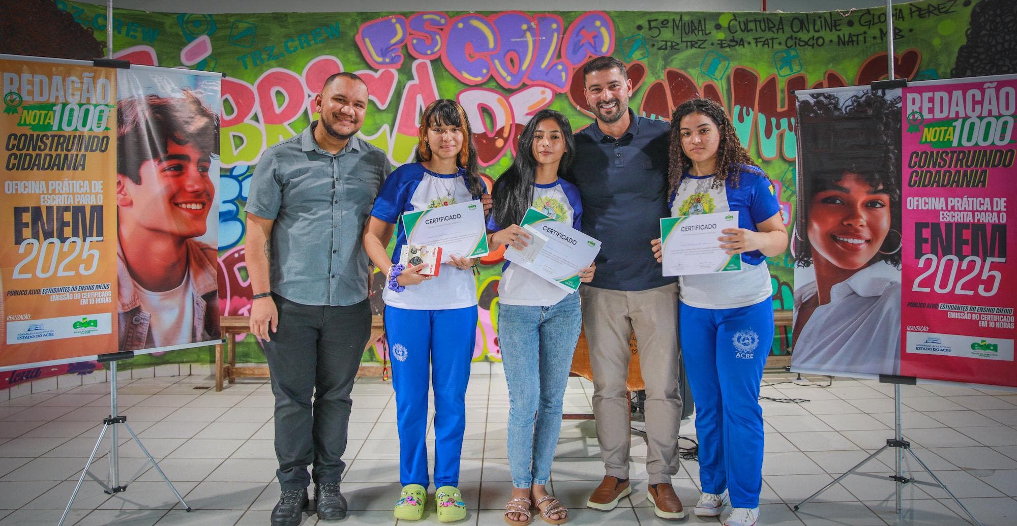 Estudantes da escola estadual Glória Perez, na parte alta de Rio Branco, foram contemplados nesta segunda feira,6, com uma etapa do projeto “Redação Nota Mil”, da Escola do Legislativo, que oferta um intensivo de redação preparatória para o ENEM.