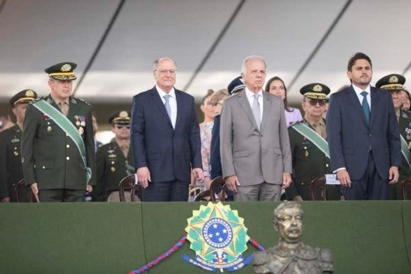 Compareceram à cerimônia Geraldo Alckmin (PSB), presidente da República em exercício; Alexandre de Moraes, ministro do Supremo Tribunal Federal; Augusto Aras, procurador-geral da República; ministros, como Juscelino Filho, das Comunicações; e parlamentares, como o senador Hamilton Mourão (Republicanos-RS), que é da oposição ao governo Lula, mas tem longa história militar antes de entrar para a política.