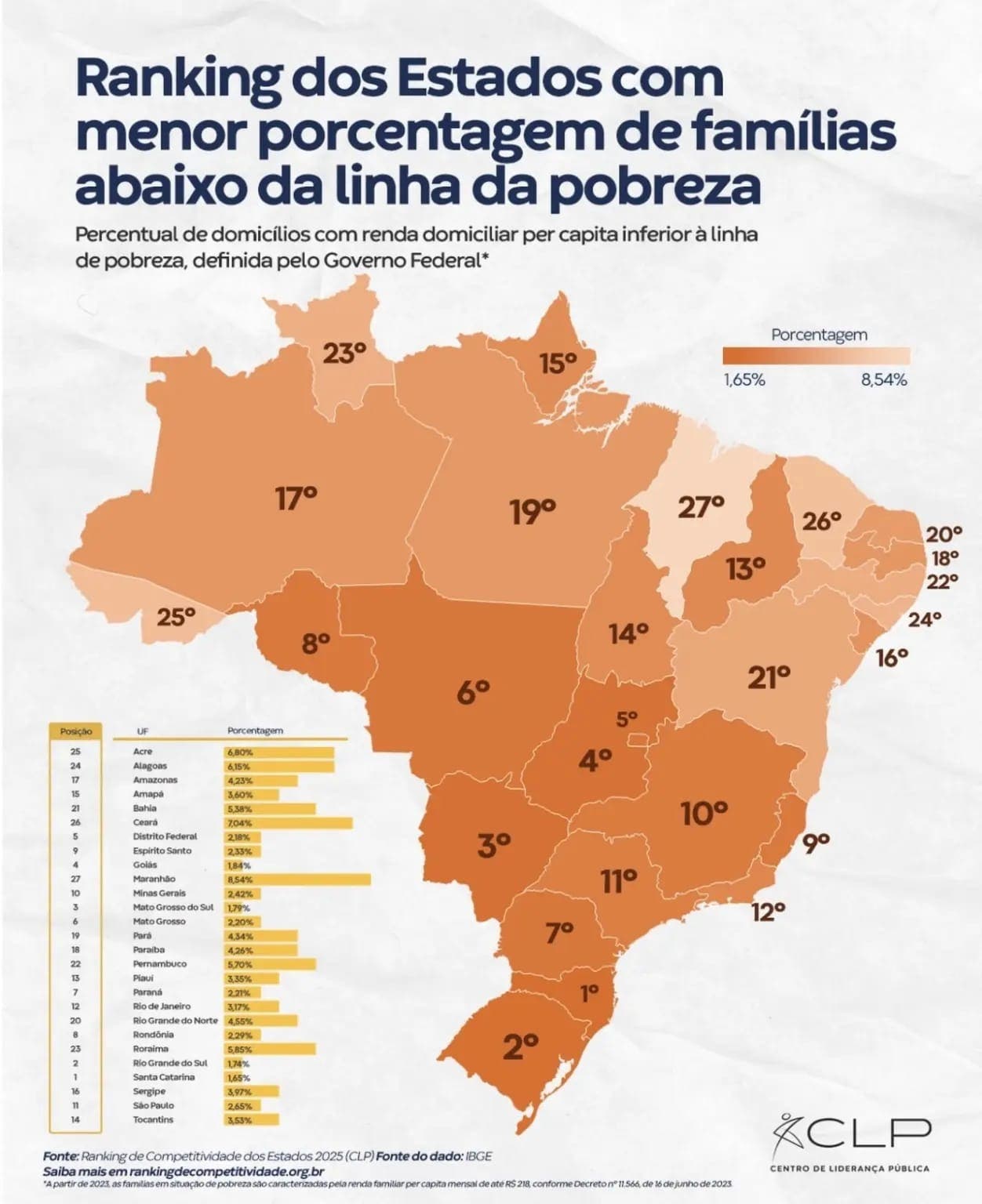 Rio Branco, AC – 21 de novembro de 2025 – Um levantamento recente revelou que o Acre enfrenta um grande desafio no combate à pobreza. O estado ocupa a 25ª posição no Ranking de Competitividade dos Estados 2025, elaborado pelo Centro de Liderança Pública (CLP), no indicador que mede a proporção de famílias vivendo abaixo da linha da pobreza.
