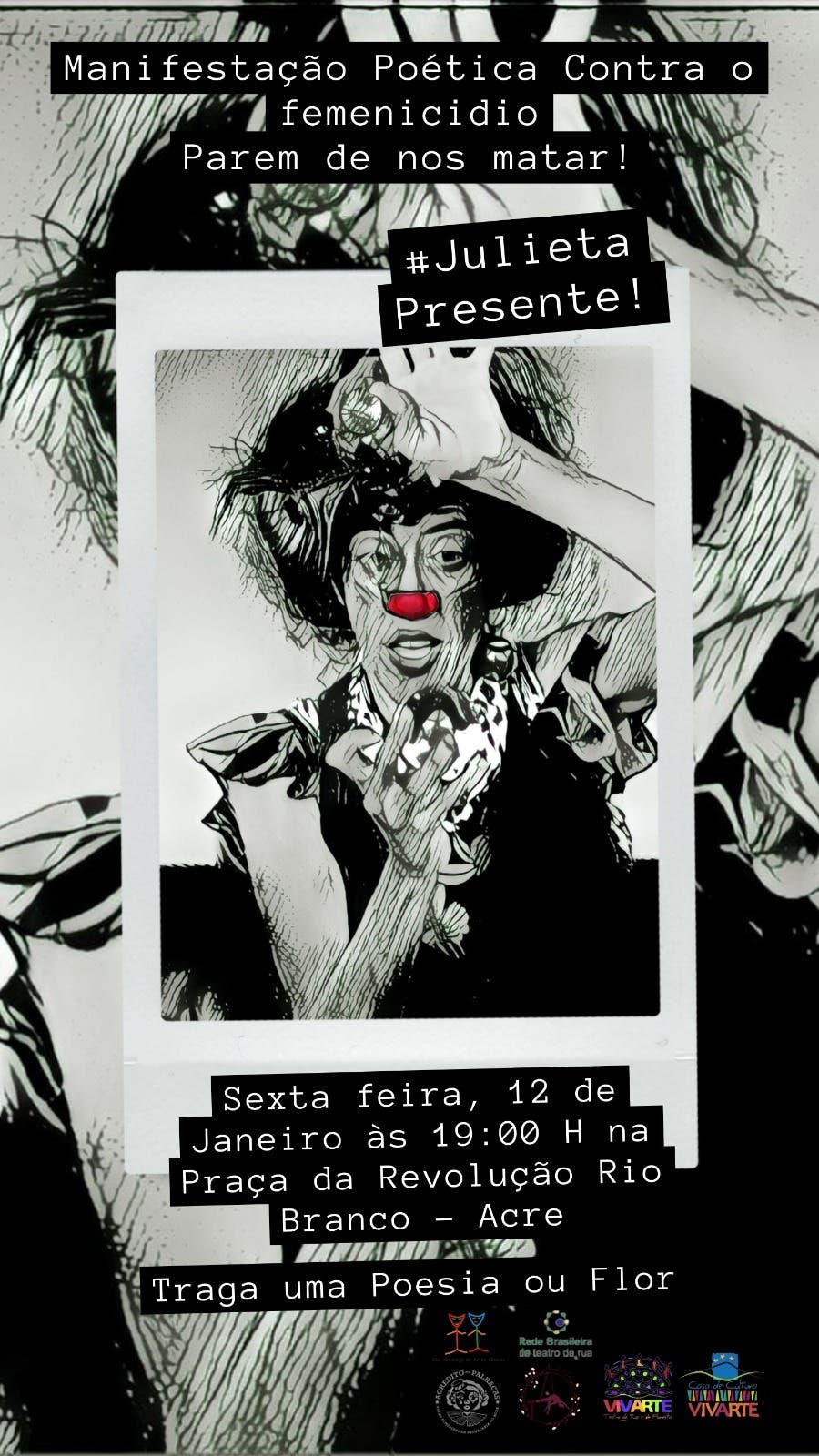 Um ato simbólico foi realizado em Manaus por artistas e amigos. No Acre, a manifestação entitulada “#JulietaPresente” acontecerá na Praça da Revolução, às 19h, em Rio Branco, por artistas acreanos.