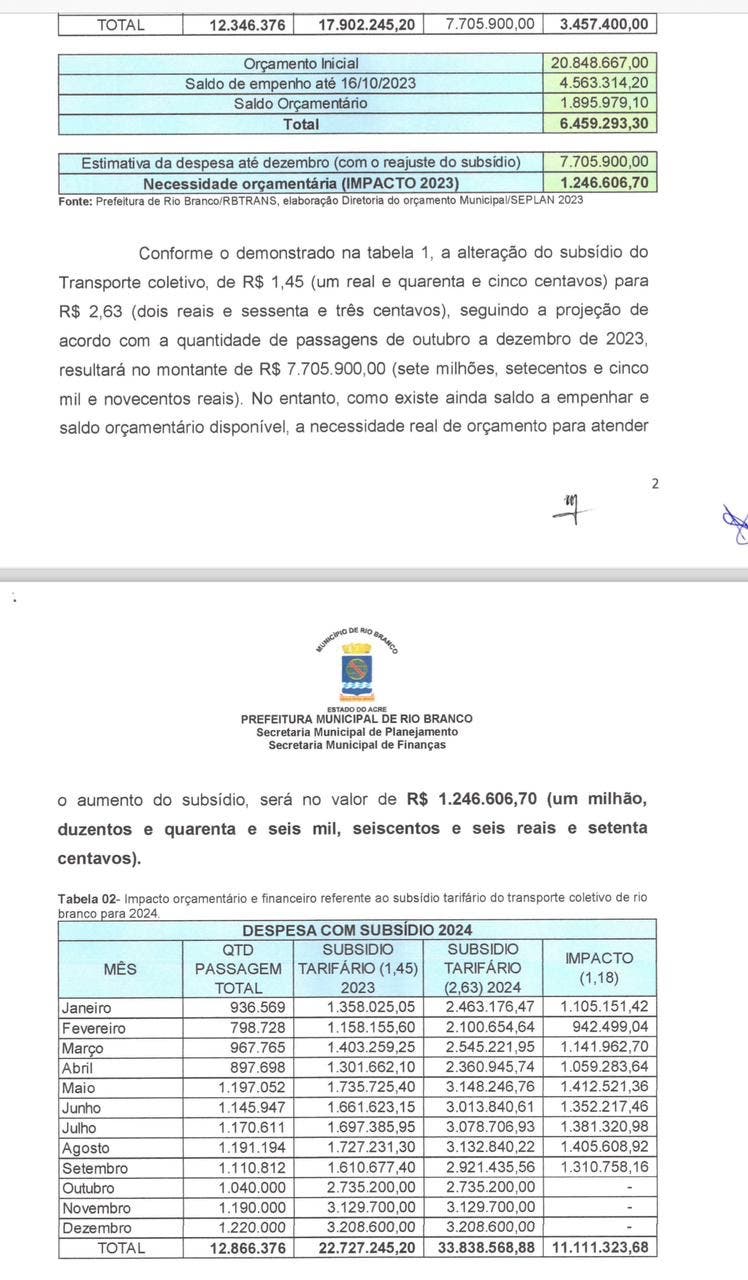 No entanto, as intenções da administração municipal tomaram um rumo inesperado no primeiro dia de novembro de 2023. O prefeito encaminhou uma nova proposta à casa legislativa buscando aumentar ainda mais o subsídio concedido à empresa Ricco. A proposta apresentada visa elevar o subsídio que anteriormente era de R$ 1,45 para R$ 2,63 por passagem, enquanto o valor da passagem permaneceria em R$ 3,50. No entanto, análises detalhadas revelam que, com esse aumento no subsídio, o valor real da passagem será elevado para R$ 6,13 a partir do ano de 2024.