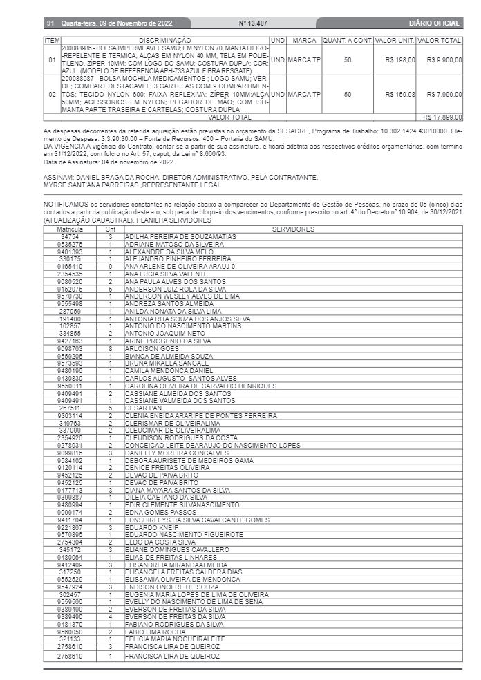 De acordo com a publicação, os mais de 300 funcionários devem comparecer no departamento indicado, os vencimentos podem ser bloqueados se não houver atualização do cadastro desses servidores, conforme o artigo 4, do Decreto nº 10.904, de 30 de dezembro de 2021.