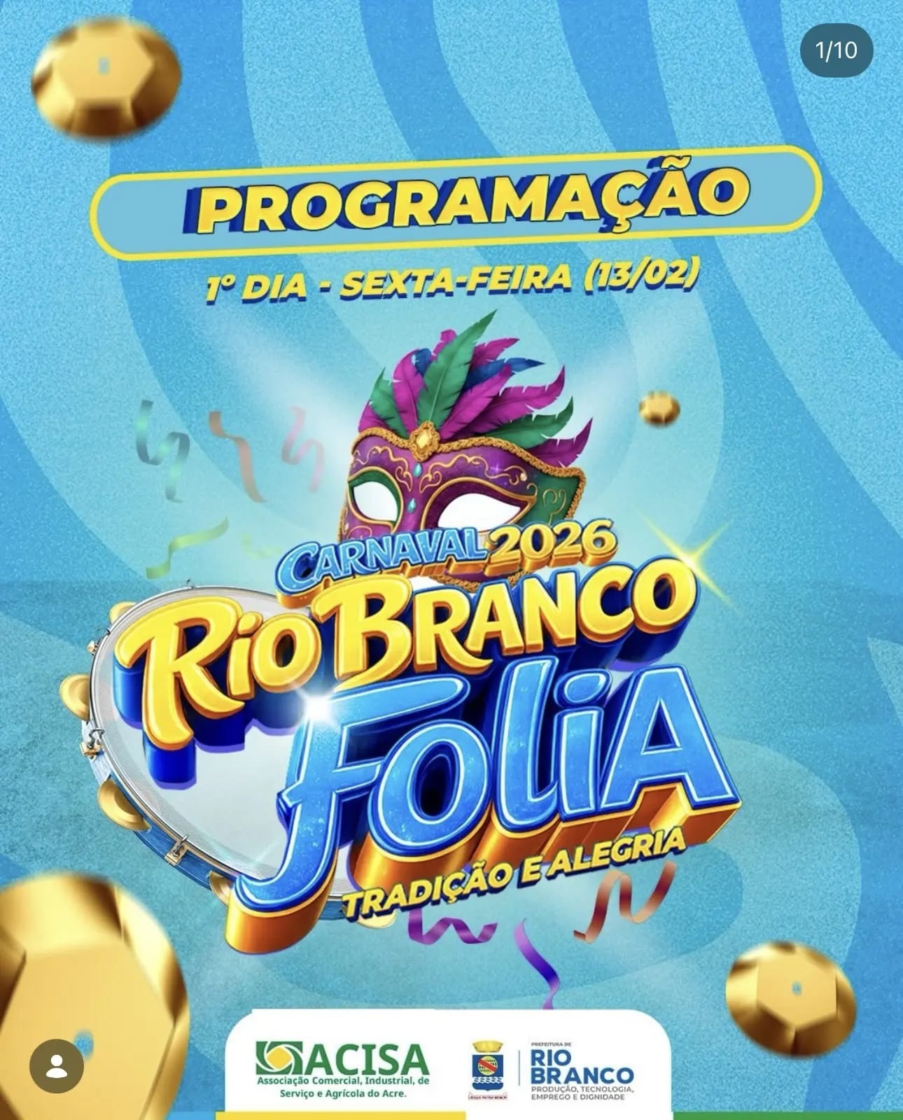 A realização do Carnaval Rio Branco Folia 2026 é da Prefeitura de Rio Branco, com o apoio da Associação Comercial, Industrial, de Serviço e Agrícola do Acre (ACISA).