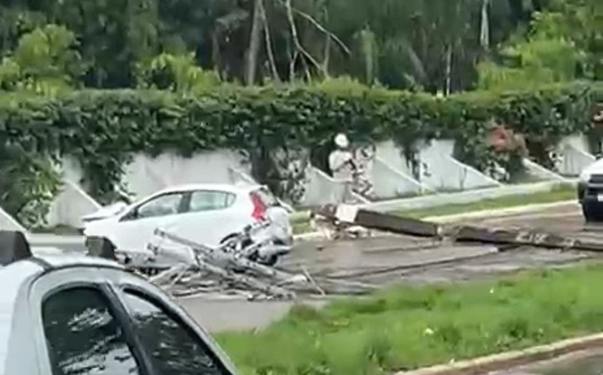 Carro derruba postes e provoca bloqueio total na Estrada do Calafate, em Rio Branco