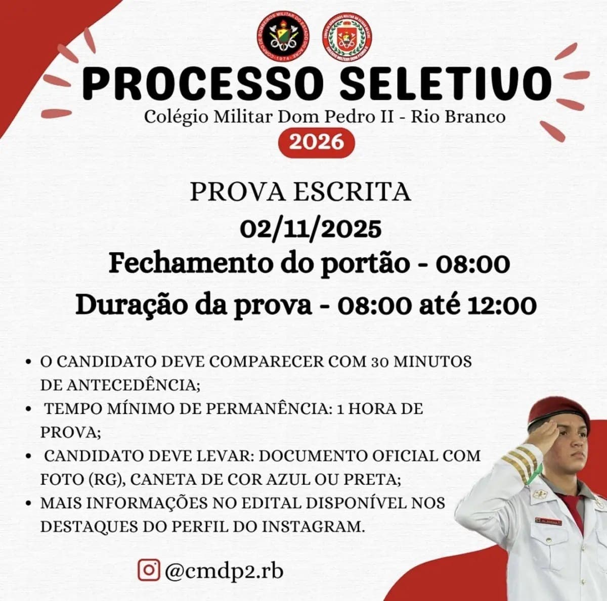 Rio Branco, AC – Neste domingo, dia 2, o Colégio Militar Estadual Dom Pedro II, em Rio Branco, será palco da prova escrita do aguardado processo seletivo 2026. O exame é a porta de entrada para estudantes que almejam ingressar no 6º ano do Ensino Fundamental – Anos Finais da prestigiada instituição.