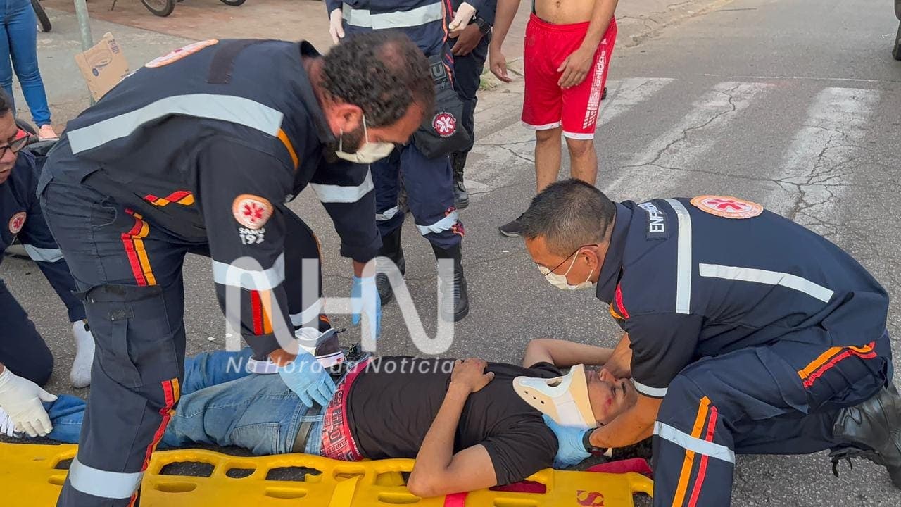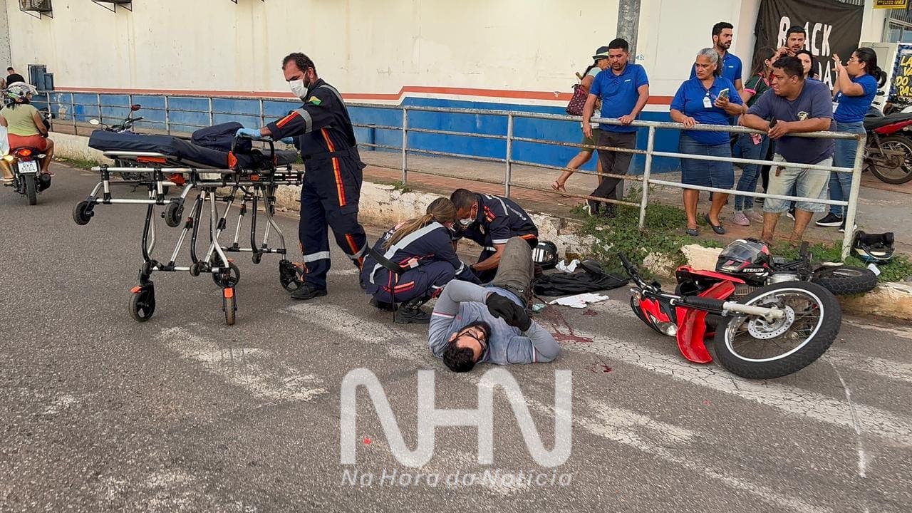 O motociclista de aplicativo Luiz Fernando Silva do Nascimento, de 33 anos, Gabriel Pereira Marques, de 19 anos, Lucas Viriato Augustinho, de 19 anos, e um adolescente de 13 anos ficaram feridos após uma colisão entre duas motocicletas, no final da tarde deste sábado (29), no cruzamento das ruas Nações Unidas e Pernambuco, no bairro Bosque, em Rio Branco.