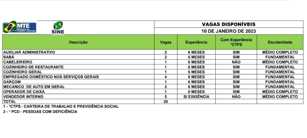 O Sistema Nacional de Emprego do Acre (Sine), está ofertando 20 vagas de emprego para esta terça-feira, 10. Dessas, nove vagas são para quem possui nível fundamental e 11 para nível médio.