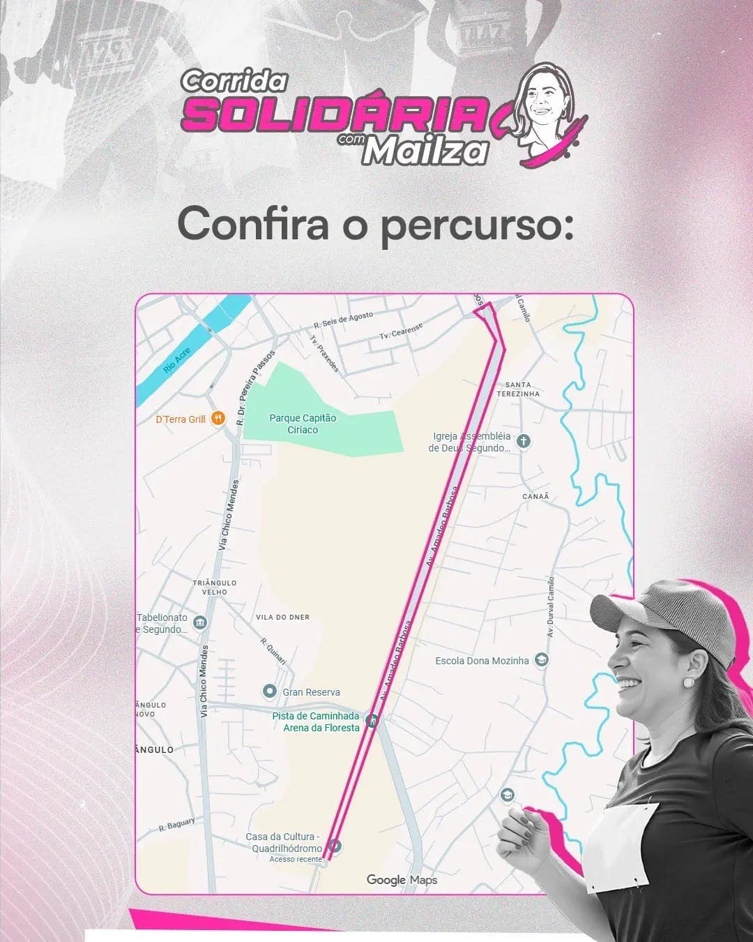 Corrida Solidária com Mailza faz trajeto de 5 km pela Avenida Amadeo Barbosa em Rio Branco neste sábado