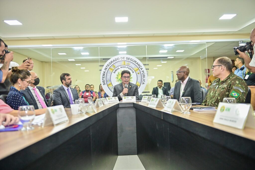Os técnicos dos ministérios da Defesa, da Justiça e Segurança Pública, dos Direitos Humanos, da Saúde, das Relações Exteriores e da Casa Civil discutiram com representantes do Governo do Estado, prefeituras e outras instituições algumas estratégias fundamentais, na sede da Secretaria de Justiça e Segurança Pública (Sejusp).