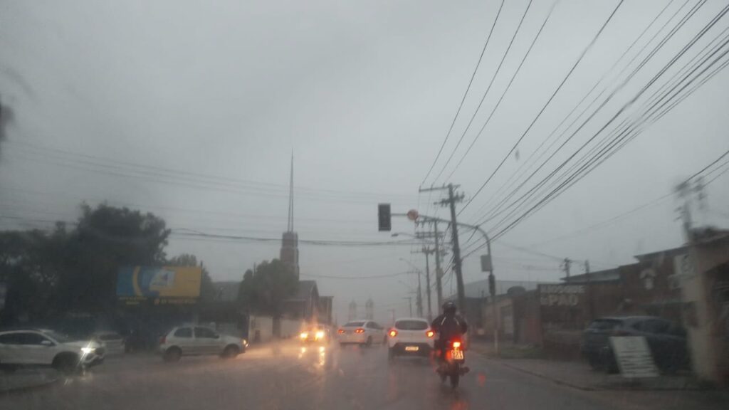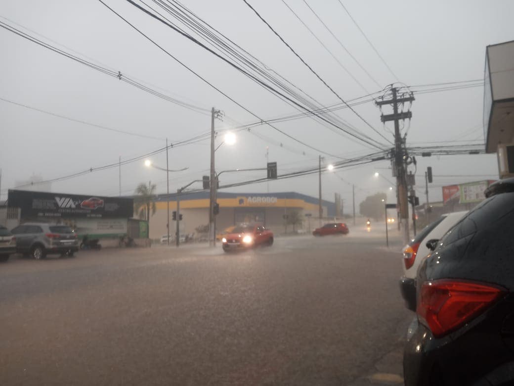 A forte chuva também causou inundações em alguns pontos da capital como na rua João Gomes Freitas, bairro Estação Experimental.