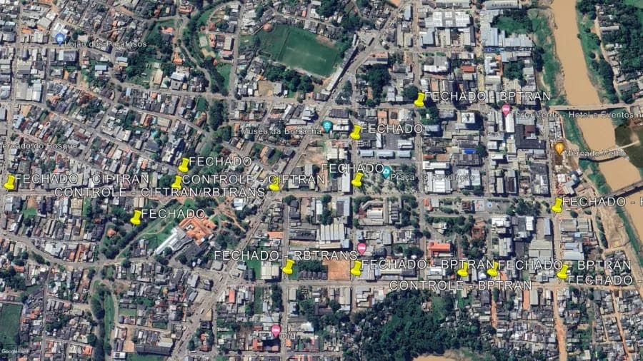 Pontos que serão fechados pelos órgãos de trânsito: