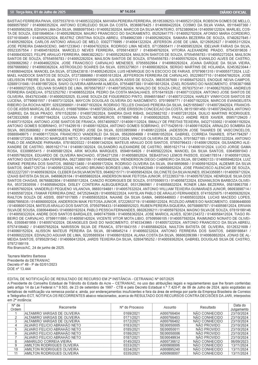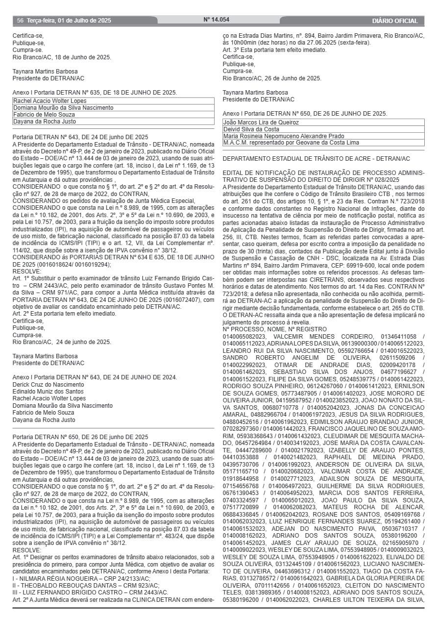 O Departamento Estadual de Trânsito do Acre (Detran-AC) publicou edital notificando condutores sobre a abertura de processos administrativos para suspensão do direito de dirigir. A medida, baseada no Código de Trânsito Brasileiro (CTB) e na Resolução nº 723/2018 do Contran, atinge condutores que não foram localizados por meio de notificação postal.