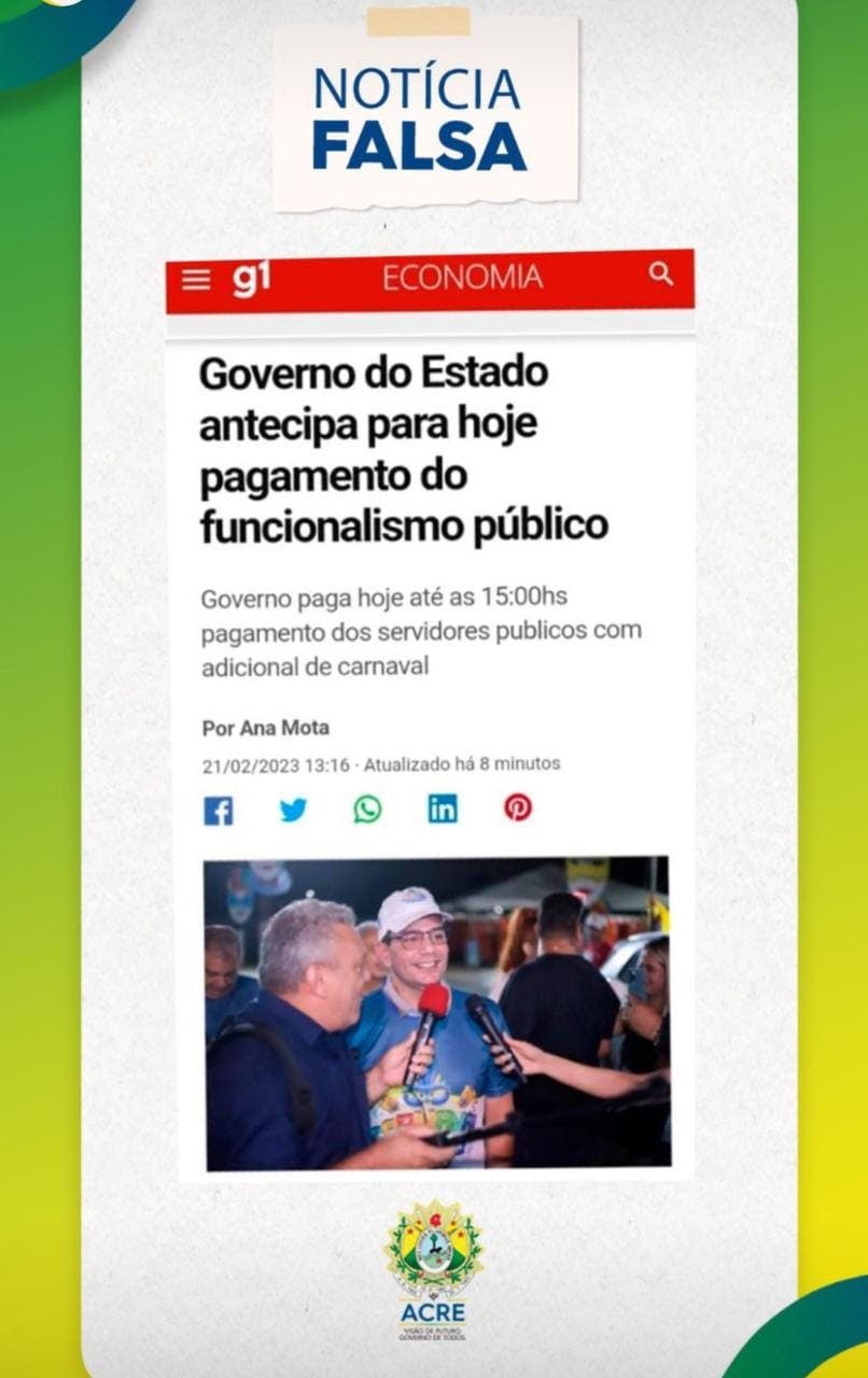 Uma Fake News passou a circular na tarde desta quarta-feira, 22, uma notícia de que o governo do estado teria antecipado o pagamento do funcionalismo público para às 15h do dia 21 (terça-feira).