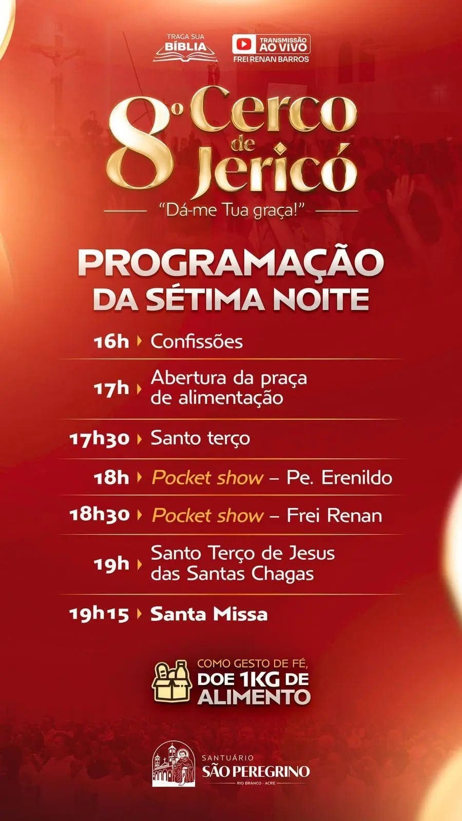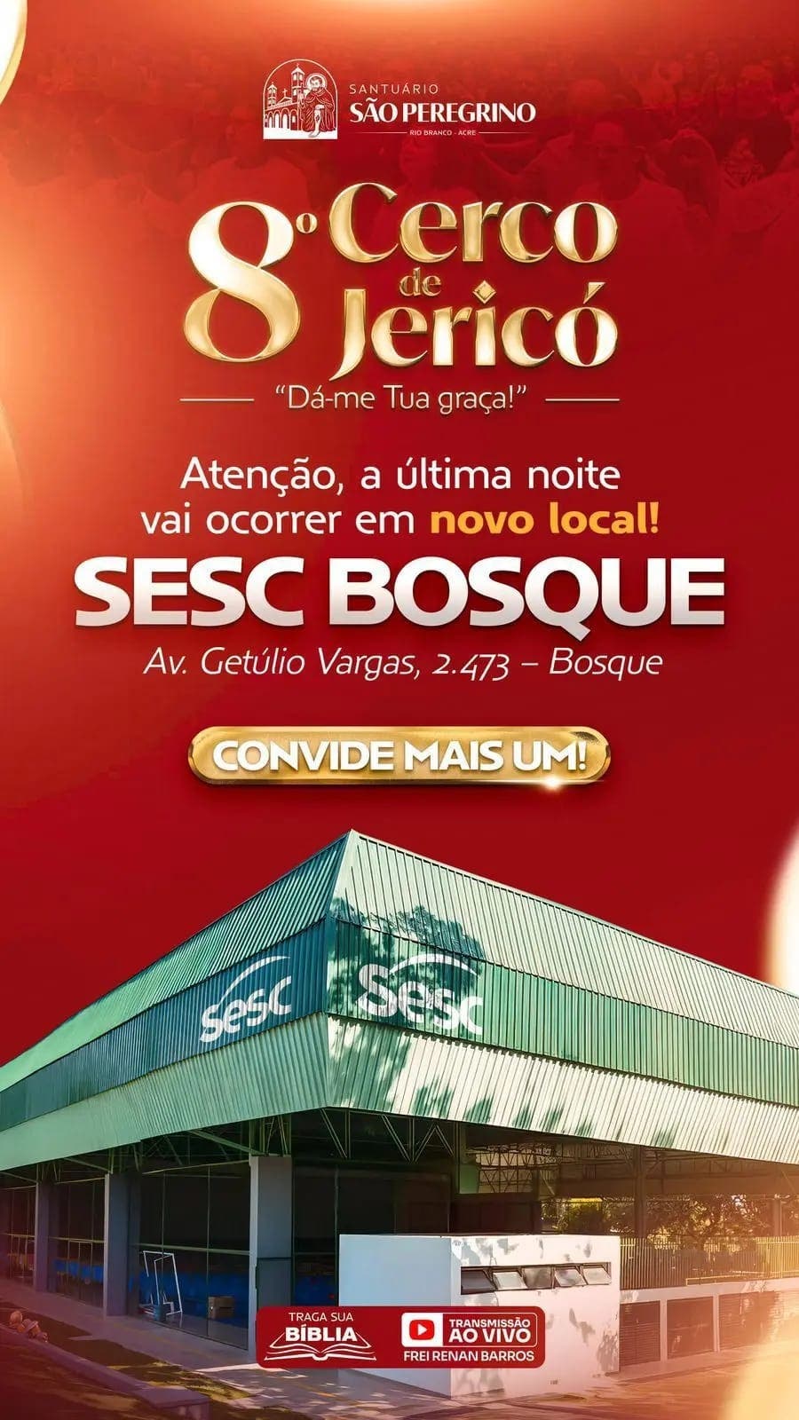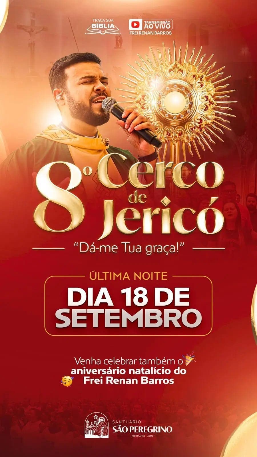 “O Cerco de Jericó é um momento de profunda fé, marcado por sete quintas-feiras de oração e louvor a Deus. Diante do grande número de fiéis que o Santuário de São Peregrino já não comporta, optamos por realizar esta última noite no ginásio do Sesc. Será um momento de renovação da fé, louvor a Deus, com bênçãos sendo derramadas sobre nossas famílias”, declarou Frei Renan.