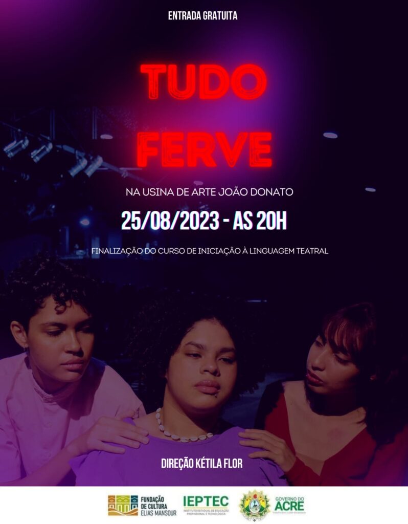 O espetáculo teatral “Tudo Ferve” será apresentado, nesta sexta-feira, 25, às 20h, na Usina de Arte João Donato. A peça é a finalização do curso de iniciação à linguagem teatral.