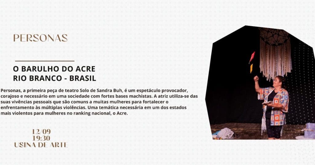 As companhias de teatro Cia Tanto Lá Quanto de Cá e a Cia Cata-Ventos de Cultura, realizam, entre os dias 11 e 17 de setembro, em Rio Branco (AC), o Festival Internacional de Cultura, Artes e Teatro (FICATE). Ao todo, serão 12 apresentações, que serão realizadas em lugares distintos da capital como: Praça da Revolução, Sesc-Centro e Usina de Artes João Donato.