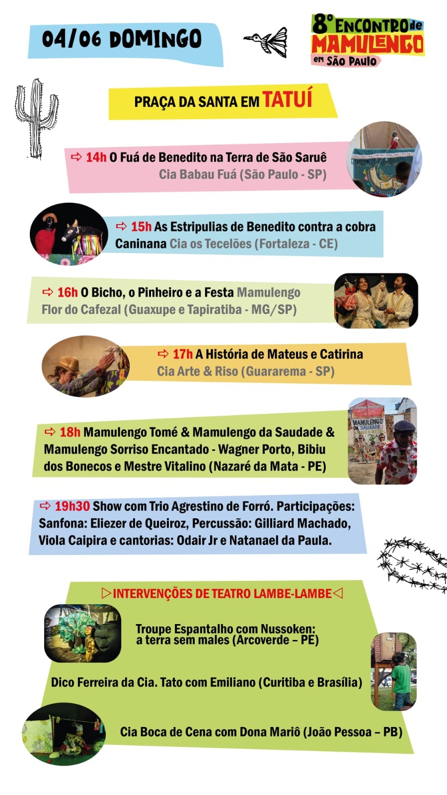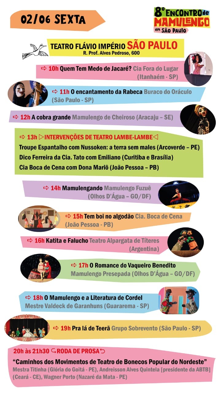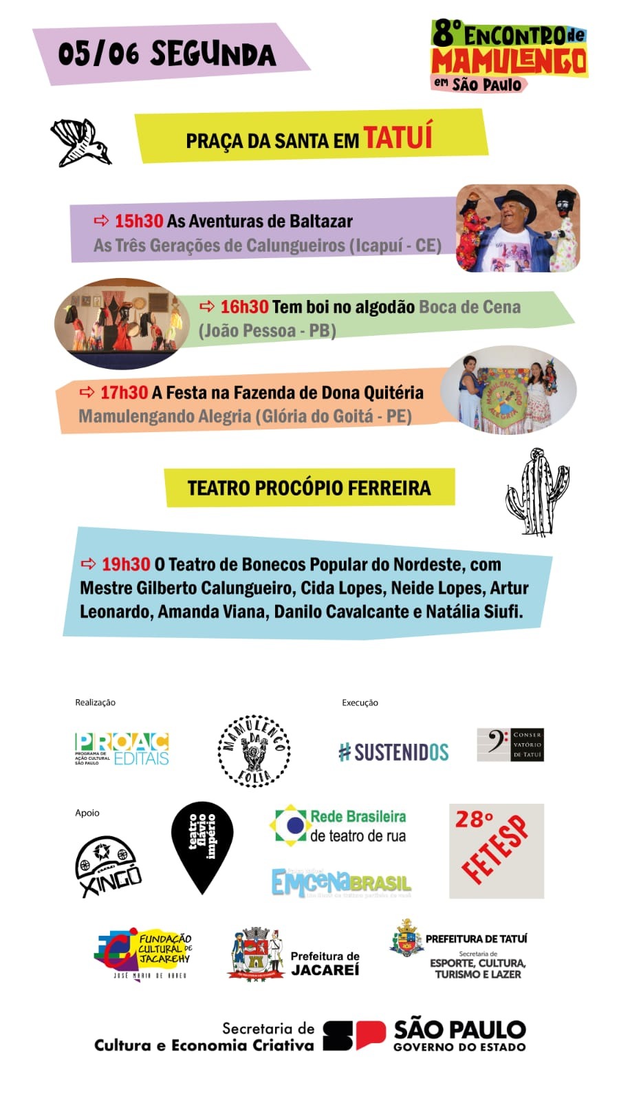 A Cia Flor de Muçambê foi selecionada para participar do 8º Encontro de Mamulengo em São Paulo. O evento ocorre entre os dias 1 e 5 de junho nas cidades de São Paulo, Jacareí e Tatuí.