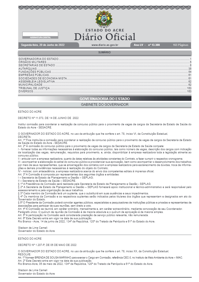 A lista com os 53 nomes foi divulgada na edição do Diário Oficial do Estado (DOE) desta segunda-feira (20).