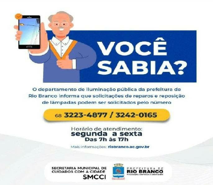 A reportagem entrou em contato com o Gerente de Departamento de Iluminação Pública, na Secretaria Municipal de Zeladoria da Cidade (SMZC), Neimar de Oliveira Dantas, que disse não ter nenhum protocolo neste endereço, mas que os moradores podem fazer o pedido pelos canais de atendimento (68) 3223-4877 (WhatsApp) ou (68) 3242-0165, que atendem de segunda a sexta-feira, das 7h às 17h.
