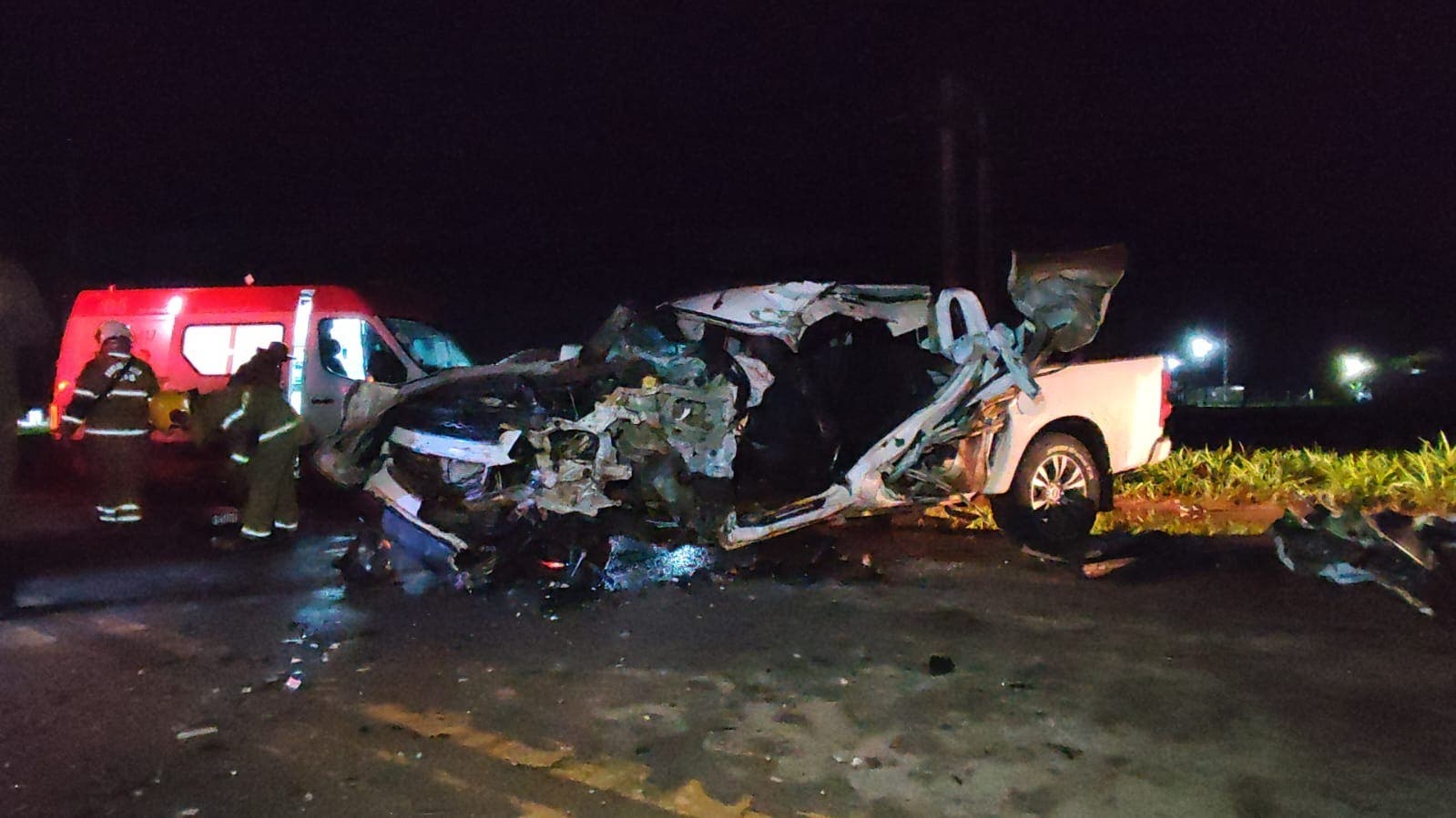 A caminhonete ficou completamente destruída. O motorista sofreu múltiplos ferimentos, entre eles trauma torácico, fratura na perna, corte profundo no braço esquerdo e traumatismo cranioencefálico grave. Já o condutor da carreta sofreu apenas escoriações leves na perna.
