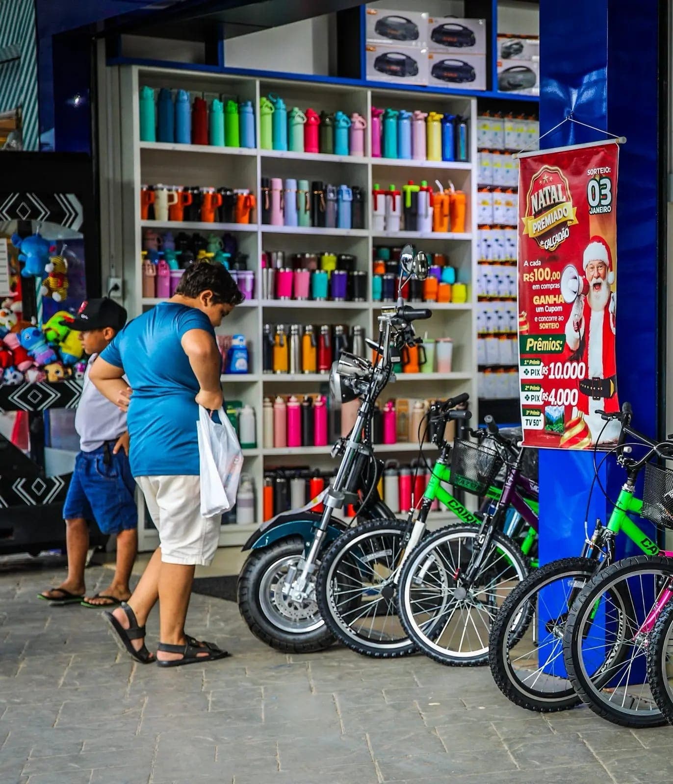 Nas vitrines e balcões, as opções mais procuradas são kits de perfumes e cosméticos, brinquedos infantis (motos, pelúcias), eletrônicos de pequeno porte, informática, calçados e acessórios — itens que combinam utilidade e preço acessível, como registram imagens do fotojornalista Sérgio Vale, do ac24horas. “As pessoas pedem mais praticidade, então os kits prontos para presentes saem bastante”, conta Isis Lima, vendedora de uma perfumaria do centro.